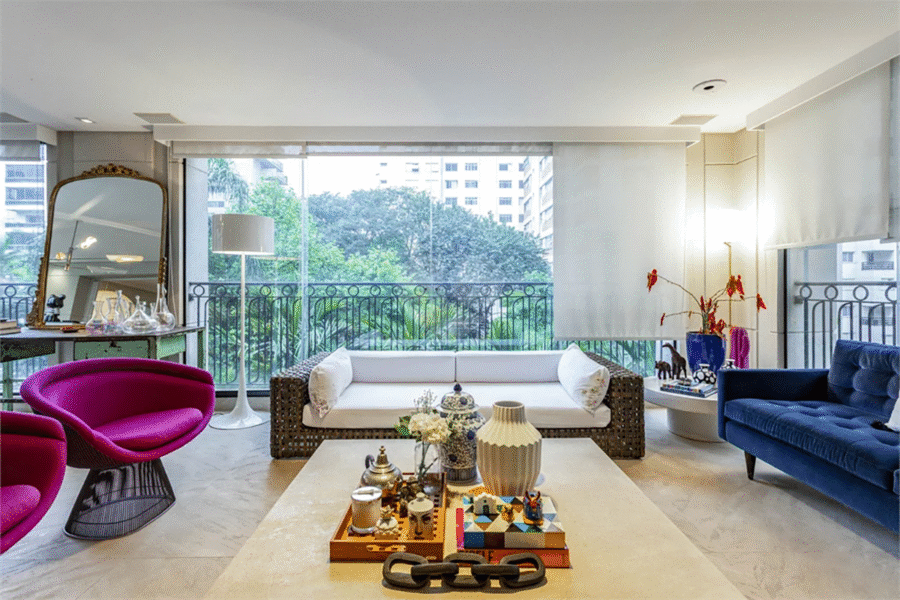 A área social é impecável, com um amplo living que se integra à sala de jantar e à varanda, criando um ambiente perfeito para recepção e convivência. As grandes janelas permitem que a luz natural invada todos os cantos do apartamento, criando uma atmosfera acolhedora e agradável. A vista panorâmica da região de Moema é um dos diferenciais deste imóvel.
